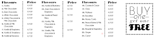 | I wanted the menu to look clear, I am not sure about the the line down the middle dividing the prices and flavors it doesn't make it easy to read. |